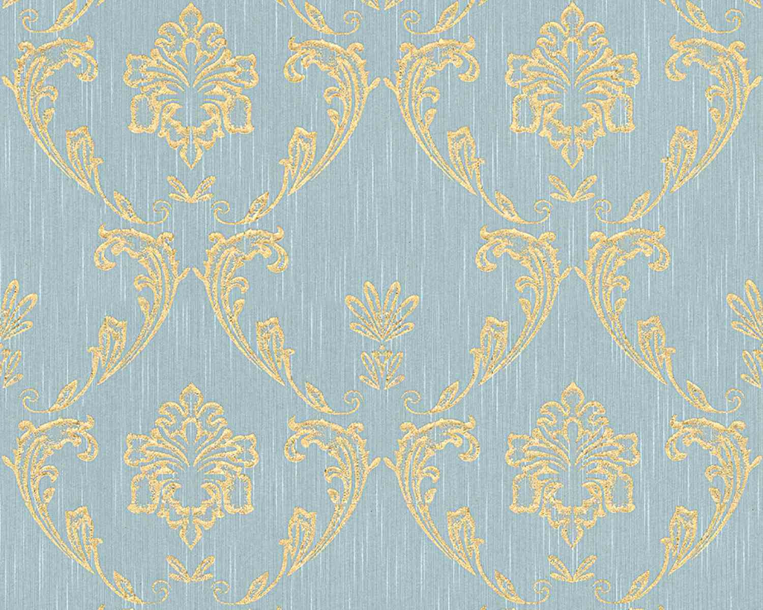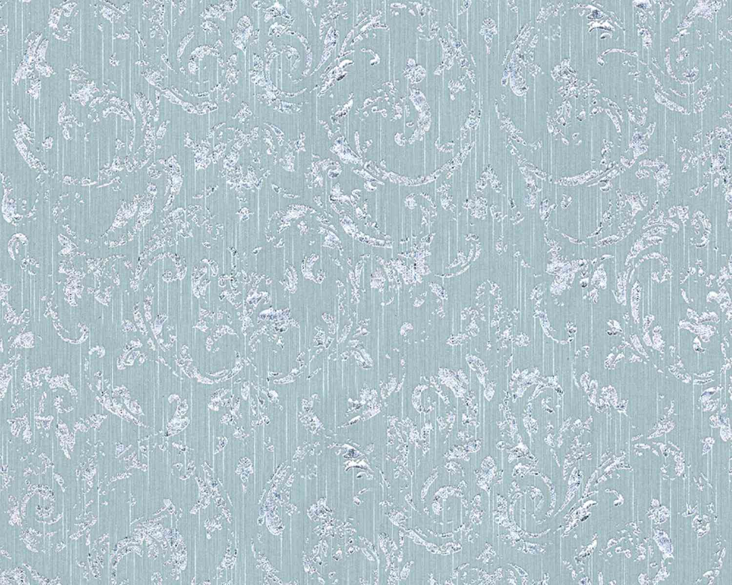 Metallic Silk Classic Damask Wall Paper Blue Green Metallic 306605