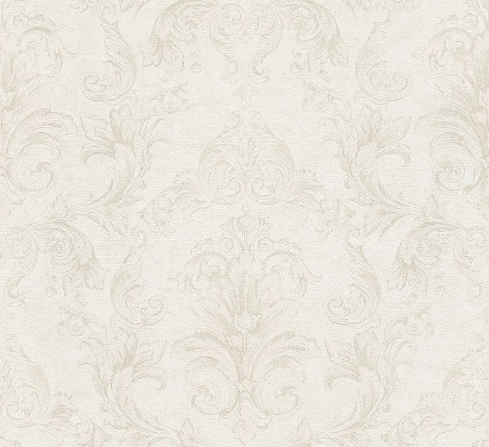 Metallic Silk Classic Damask Wall Paper White Metallic 306581