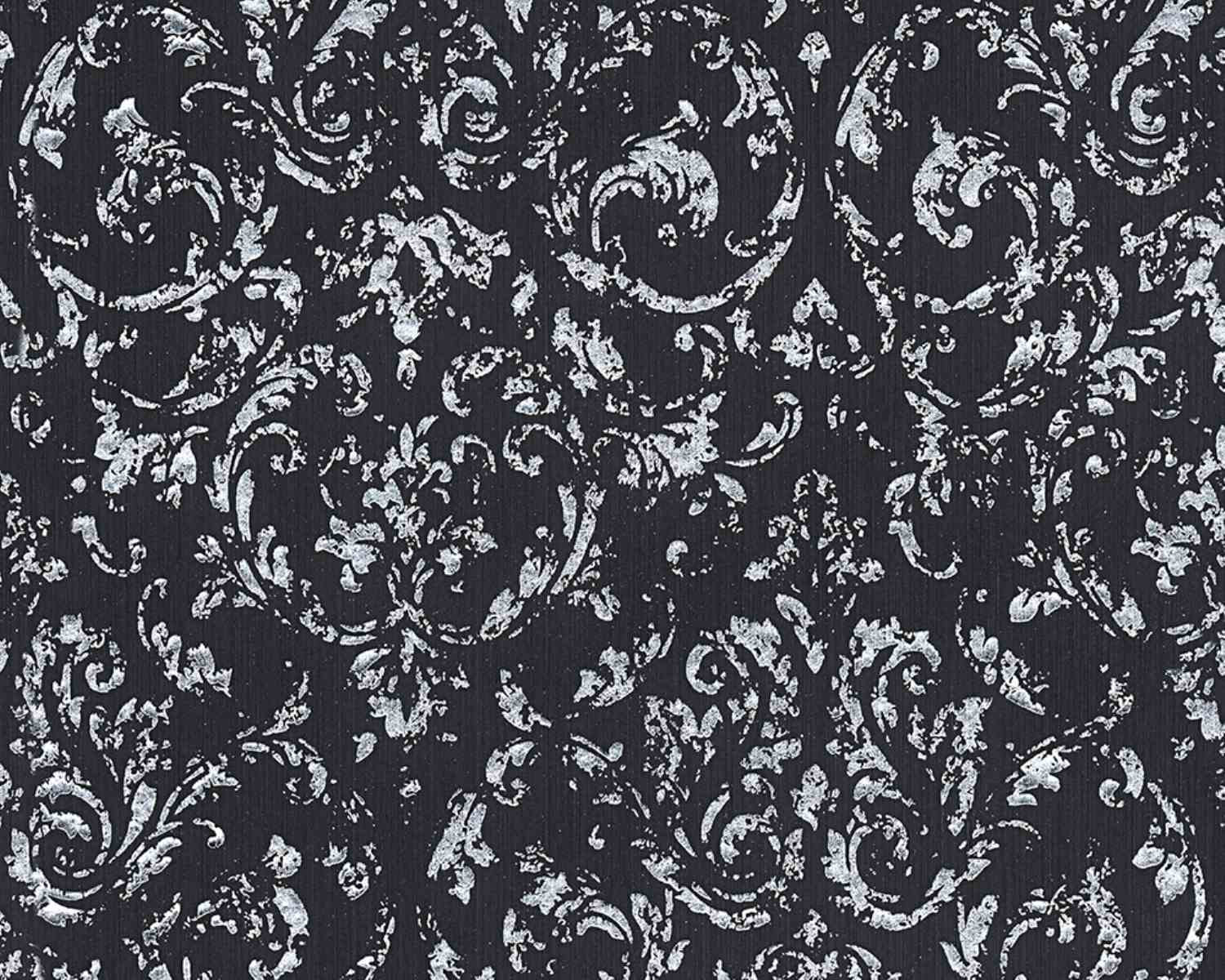 Metallic Silk Classic Damask Wall Paper Black Metallic 306606