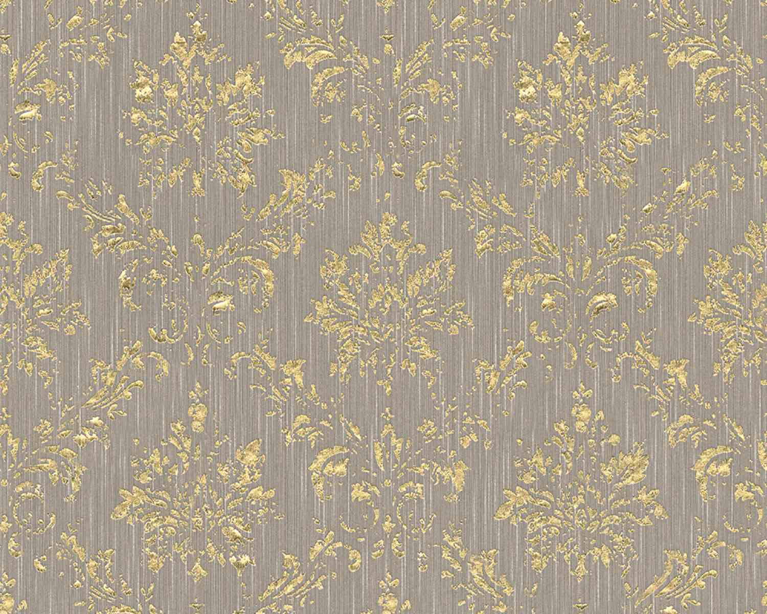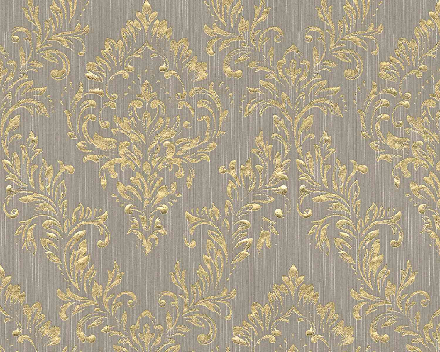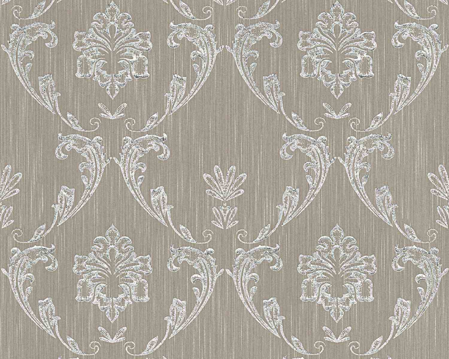 Metallic Silk Classic Damask Wall Paper Beige Metallic 306625