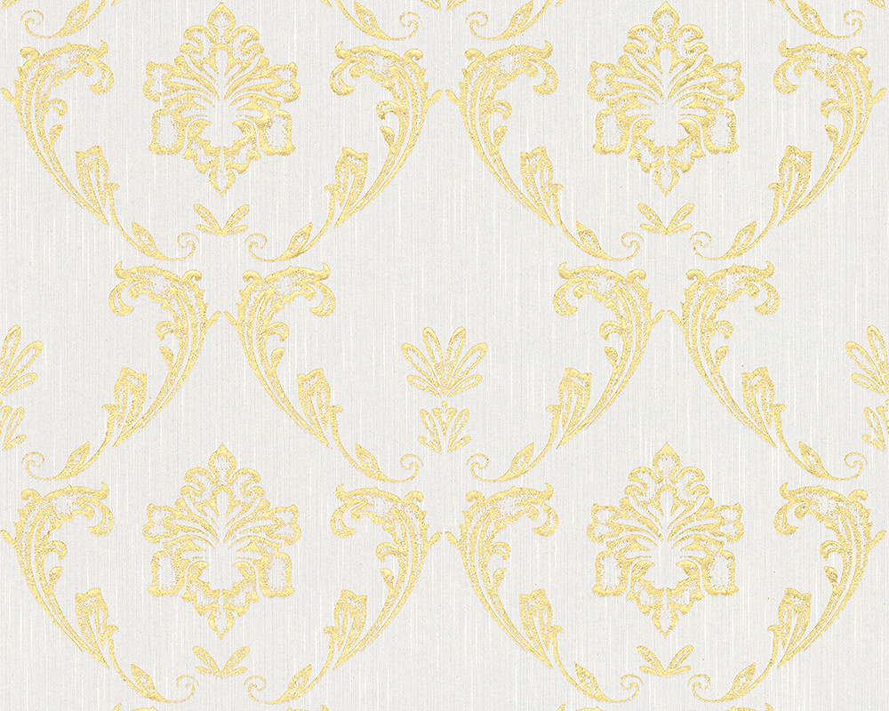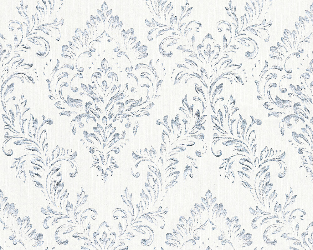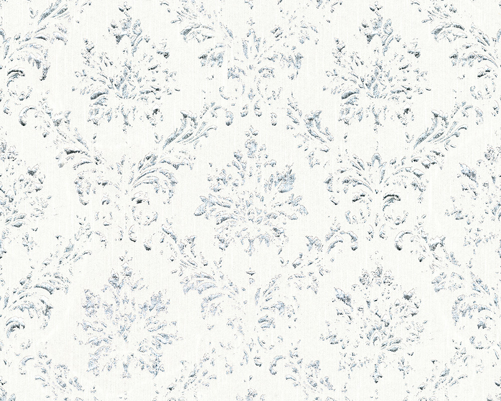 Metallic Silk Classic Damask Wall Paper White Metallic 306621