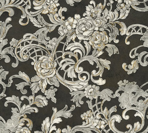 Kind of White Classic Damask Wall Paper Beige Black Grey 339283