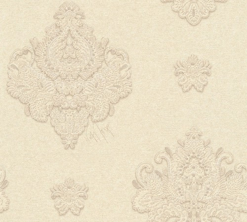 Kind of White Classic Damask Wall Paper Beige Black Grey 339282