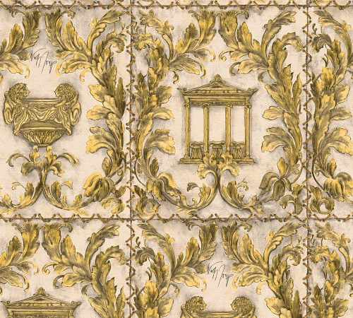 Versace II Stripes Chequered Wall Paper Beige Metallic 962374