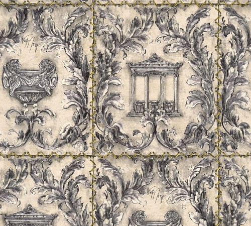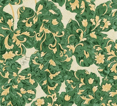 Kind of White Classic Damask Wall Paper Beige Green Metallic 338693