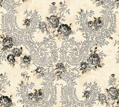 Kind of White Classic Damask Floral Wall Paper Black Grey White 340752