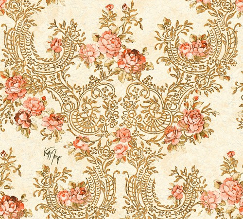 Kind of White Classic Damask Floral Wall Paper Beige Orange Metallic 3...