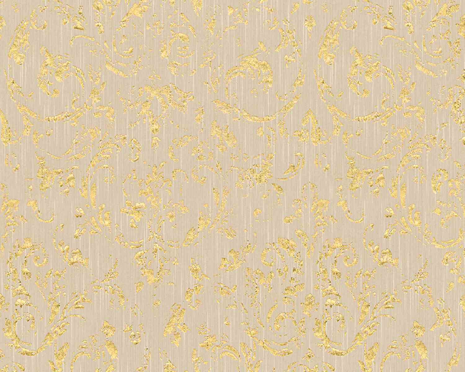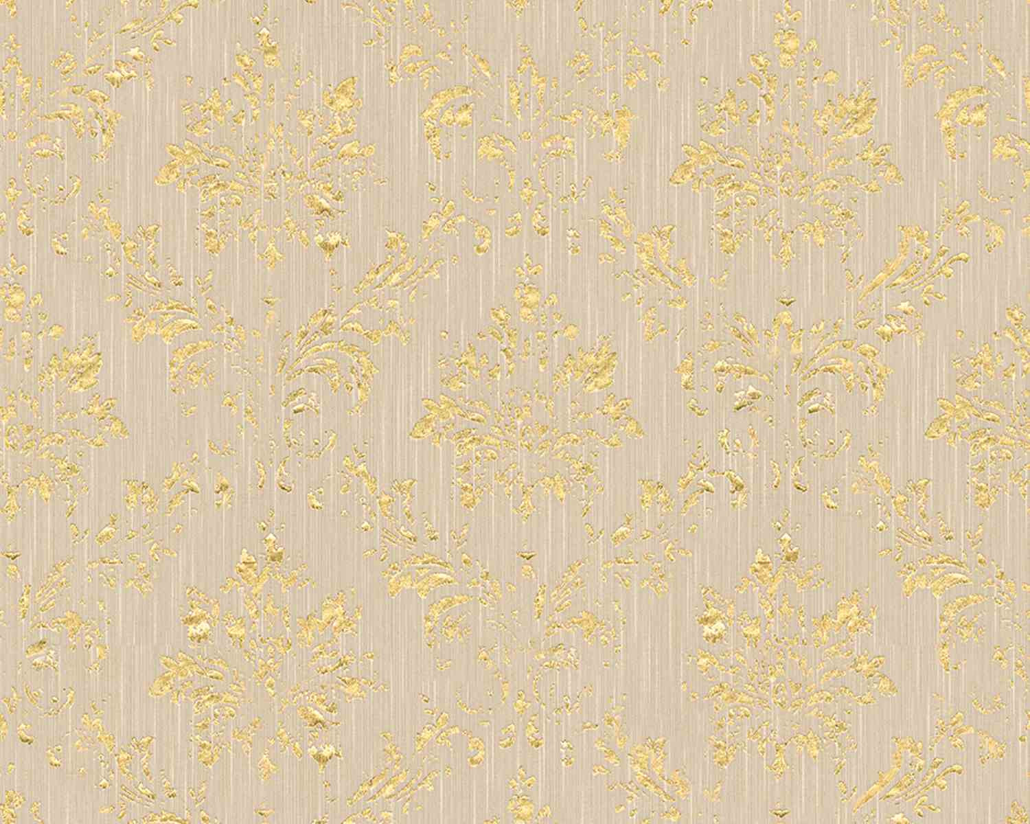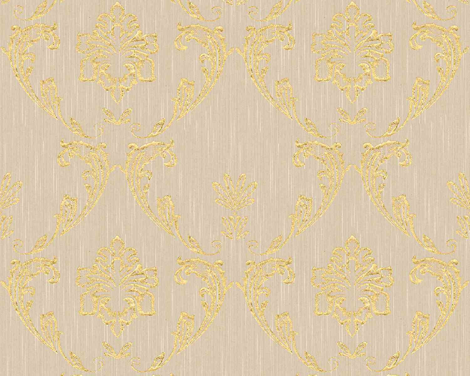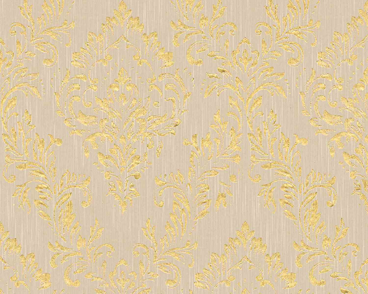 Metallic Silk Classic Damask Wall Paper Beige Metallic 306602
