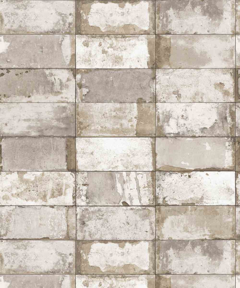 Natural Faux 2 Bricks Stone Wood Wall Paper Beige Grey White Metallic ...