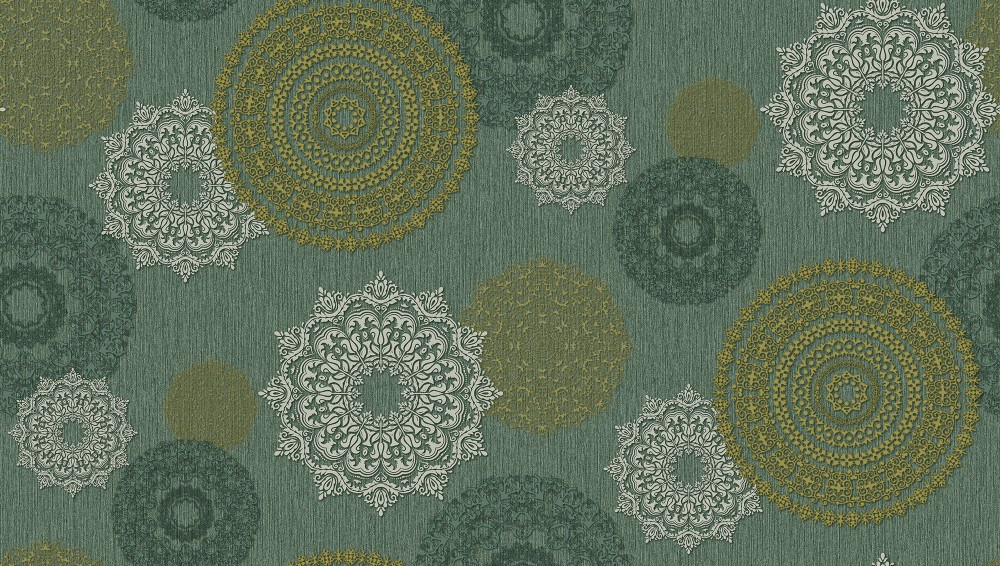 Avenue 4 Classic Damask Wall Paper Beige Green Metallic 77220-4