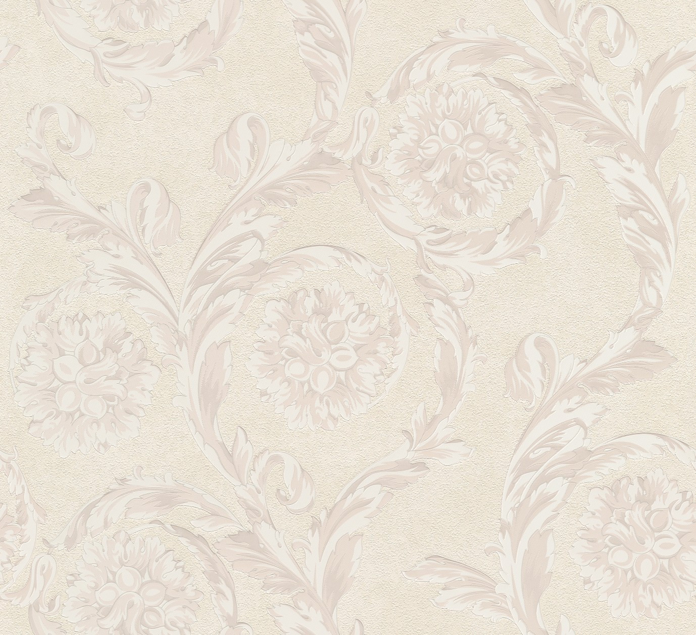 Versace Classic Damask Floral Wall Paper Beige White Metallic 935881
