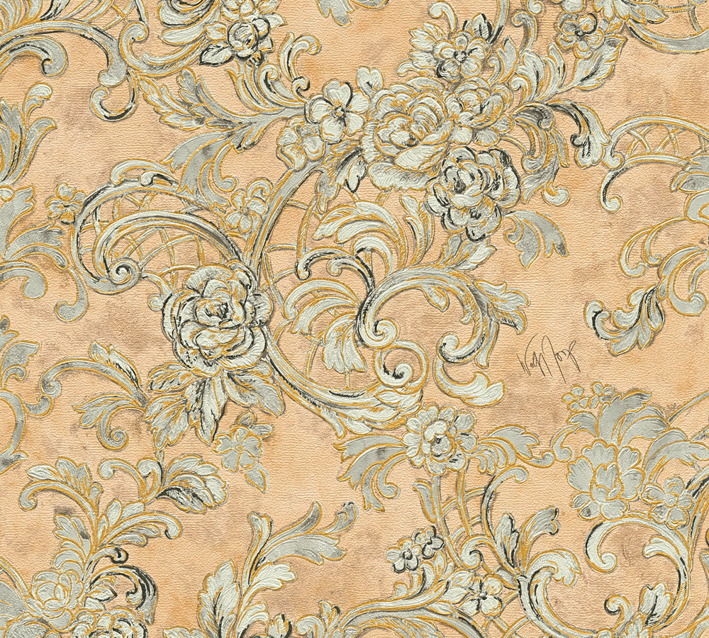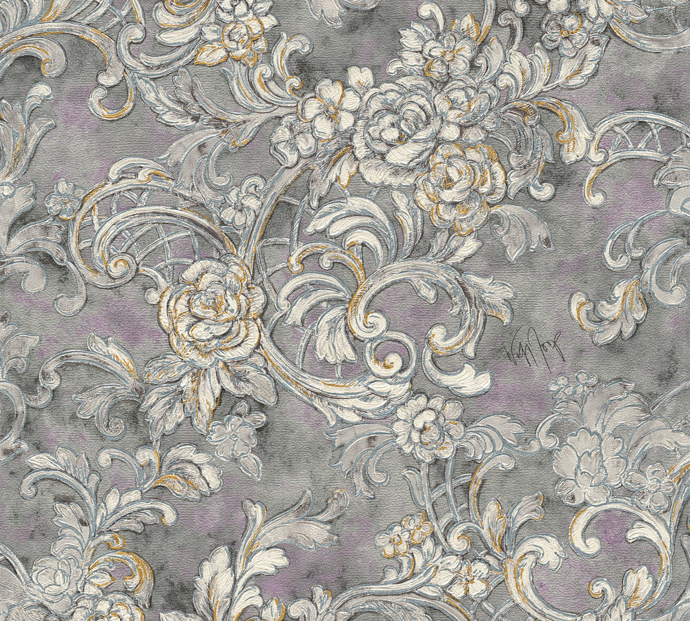 Kind of White Classic Damask Wall Paper Grey White Metallic 340774