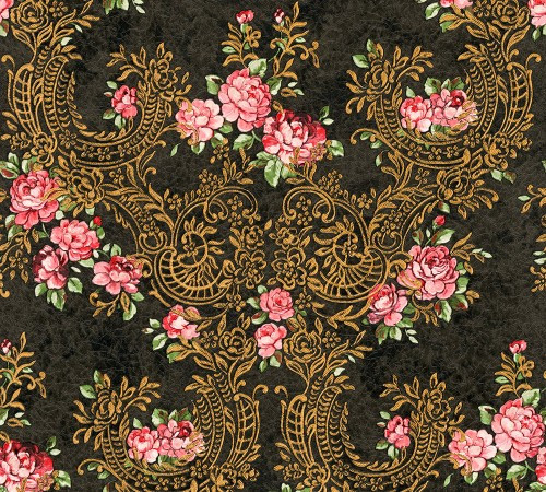 Kind of White Classic Damask Floral Wall Paper Pink Green Black Metall...