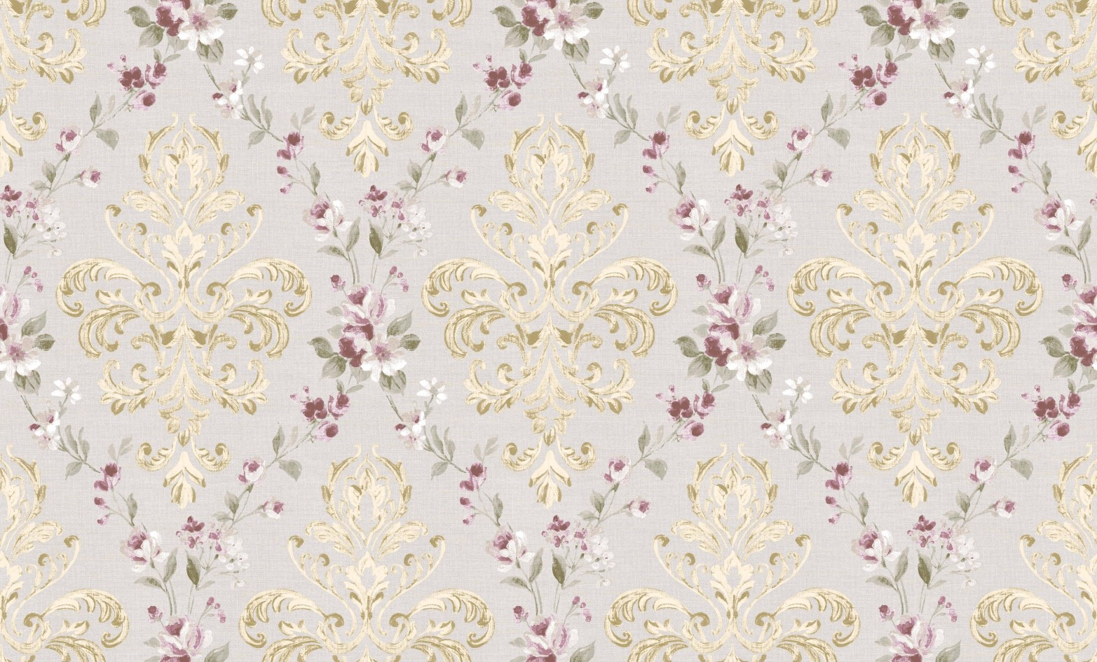 Gloria Classic Damask Wall Paper Beige Grey Metallic YG32405