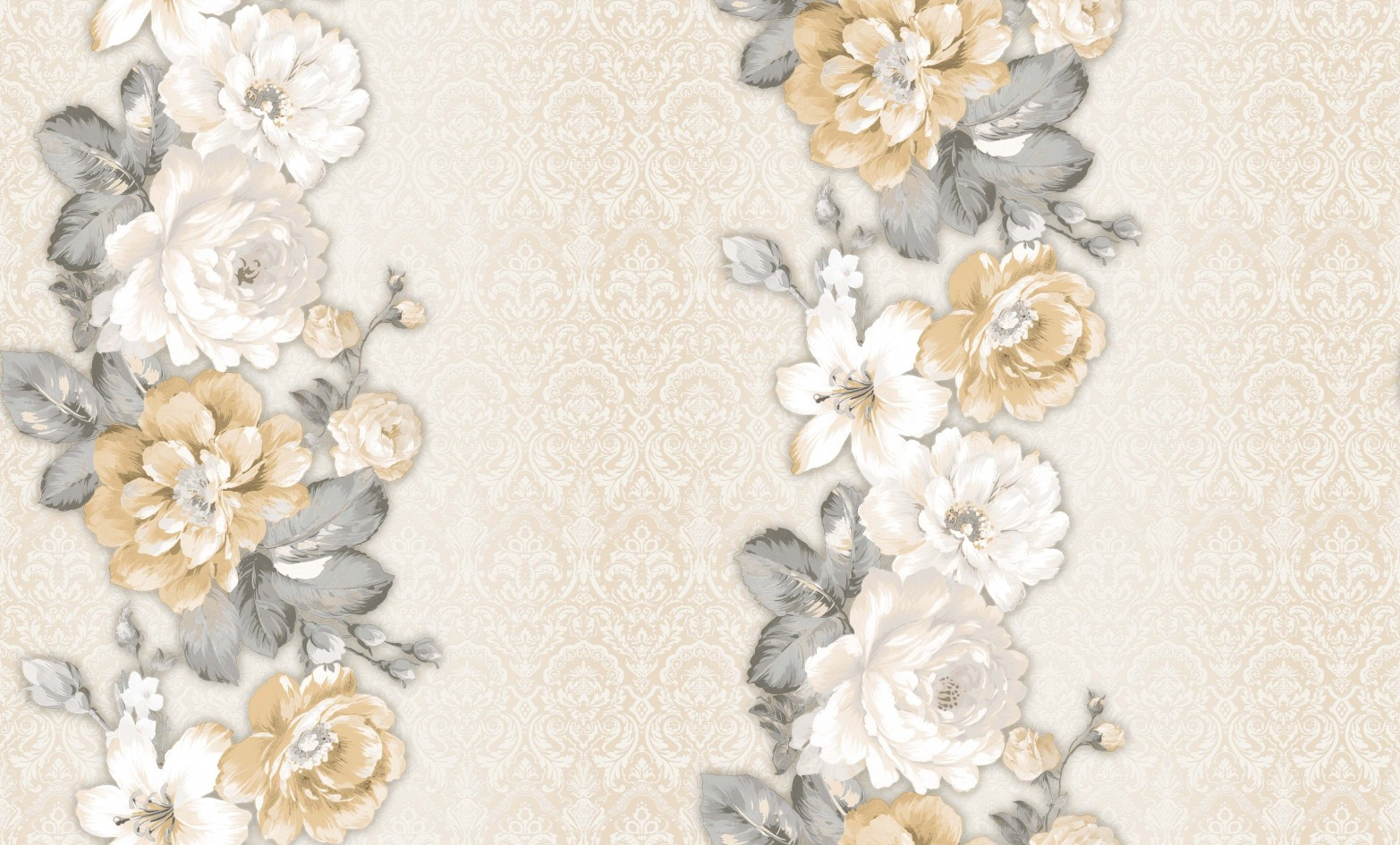 Gloria Classic Damask Wall Paper Beige Green YG30104