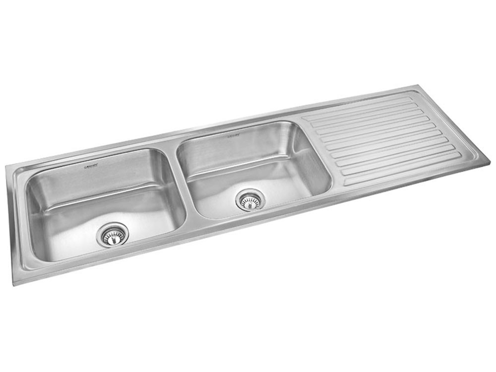 1400 mm x 610 mm Impel Twin 10” Stainless Steel Double Bowl Kitchen ...