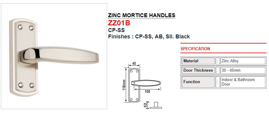 MORTICE LOCKS KBL WITH ZINC MORTICE HANDLES ZZ01B